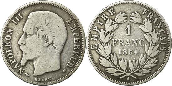 | | Coin, France, Napoleon III, Napoléon III, Franc, 1854, Paris, | | | Napoléon III, Head left, Denomination within wreath, NAPOLEON III EMPEREUR | | FEATURES |