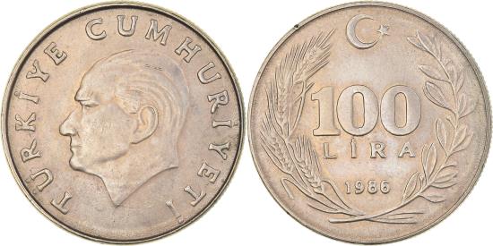 | | Coin, Turkey, 100 Lira, 1986, , Copper-Nickel-Zinc, KM:967 | | | Head of Atat, Value and date within wreath, Varieties exist. | | FEATURES |