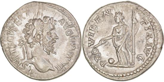 | | Coin, Septimius Severus, Denarius, 196-197, Laodicea ad Mare, , Silver | | | Laureate head right, Providentia standing left, holding sceptre and wand over globus to left., L SEPT SEV PERT AVG IMP VIII, PROVIDENTIA AVG | | FEATURES |