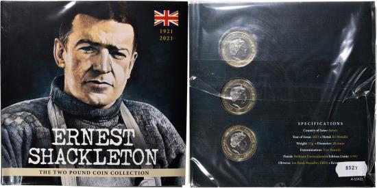 | Coin, Jersey, Ernest Shackleton., 2 Pounds, 2021, Set 3 monnaies., |