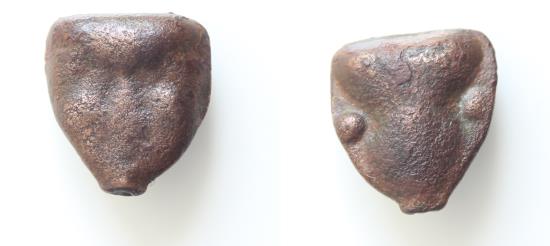 Sicily, Selinos. c.450-440 B.C. Cast Æ hexas 15 mm, 5,2g Facing mask of Selinos / Selinon leaf flanked by two pellets.