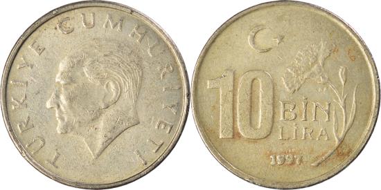 | | Coin, Turkey, 10000 Lira, 10 Bin Lira, 1997 | | | FEATURES |