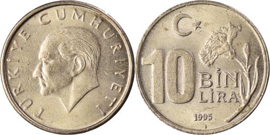 | | Coin, Turkey, 10000 Lira, 10 Bin Lira, 1995 | | | FEATURES |