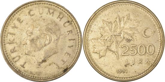 | Coin, Turkey, 2500 Lira, 1991 |
