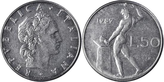 | Coin, Italy, 50 Lire, 1987 |