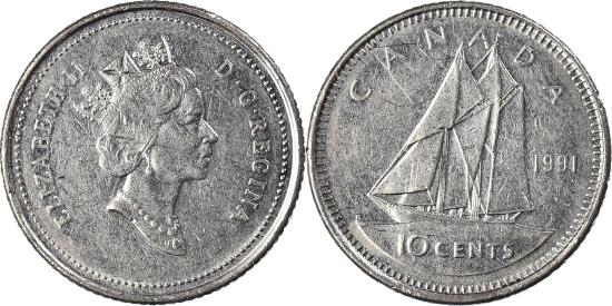 | Coin, Canada, 10 Cents, 1991 |