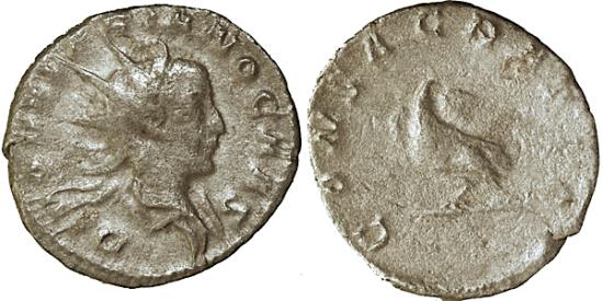 Obv: DIVO VALERIANO CAES radiate head right Rev: CONSECRATO Eagle standing right head turned (RIC 9) gF, poorly struck!