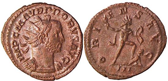 Obv: IMP CMA VR PROBUS AVG Rev: ORIENS AVG in ex XXI, bird in left field. RIC 45. EF ex Glendinnings 28/04/01