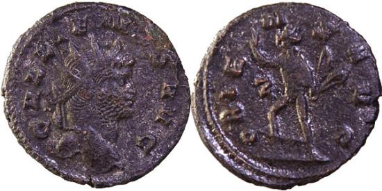 Obv: GALLIENUS AVG, radiate bust right Rev: ABUNDANTIA AVG, B in left field. RIC-157, RSC-5a. EF/VF
