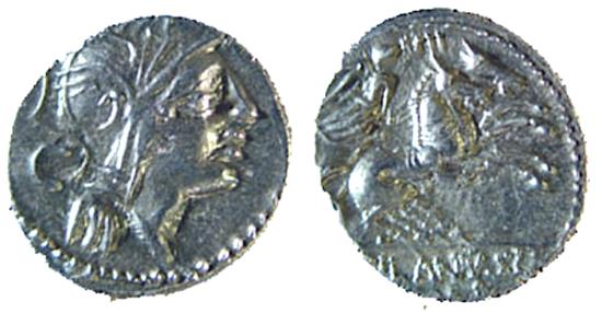 TCRRS-3501, D.Silanus L.f, AR, 3.93 gm Denarius, c.91 BC. Obv: Roma helmeted to right, C behind, Rev: Victory on biga to right, D. SILANVS L.F./ROMA in exergue, VII, Rome mint. S.225, Cr.337/3, Syd.646. As struck on small flan as usual, Brilliant gEF./AU |