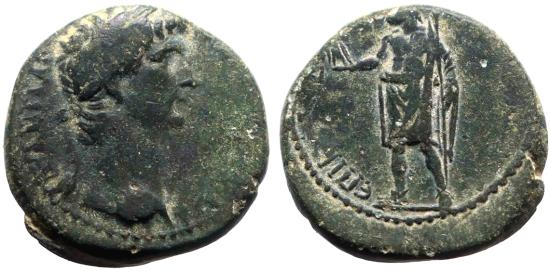 Claudius AE19 Phrygia, Aezanis. Zeus stg. w. eagle & scepter