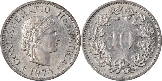 | Coin, Switzerland, 10 Rappen, 1974 |