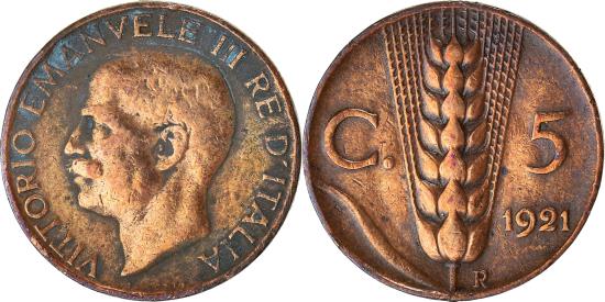 | Coin, Italy, 5 Centesimi, 1921 |