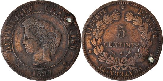 | Coin, France, 5 Centimes, 1897 |
