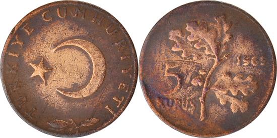 | Coin, Turkey, 5 Kurus, 1965 |
