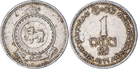 | | Coin, Ceylon, Elizabeth II, Cent, 1971, , Aluminum, KM:127 | | | Denomination at center, date below, Crowned arms | | FEATURES |