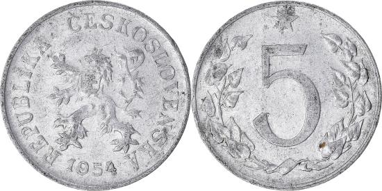 | Coin, Czechoslovakia, 5 Haleru, 1954 |