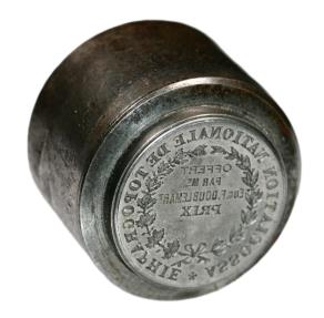 France, die from Association Nationale de Topographie. “Offert par Mr Eug. F. Doublemart PRIX”. Excellent condition. 33 x 41 mm.