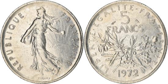 | | Coin, France, 5 Francs, 1972, , Cupro-nickel, KM:926a.1, Gadoury:771 | | | FEATURES |