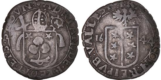 | | Coin, SWISS CANTONS, SITTEN, Batzen, 1644, , Billon, KM:16 | | | Mitre above shield with clover leaves on crossed sword and crozier, Eagle above shield with seven stars dividing date | | FEATURES |