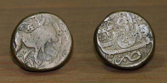 Safavid Islamic AE Cooper Fals, with lion standing to right, Mint: Isfahan