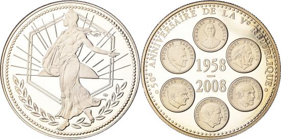 | France, Medal, 50ème Anniversaire de la Vème République, Politics, 2008 |