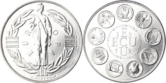 | | France, Medal, Ecu Europa, Politics, 1979, , Copper-nickel | | | FEATURES |