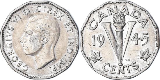| | Coin, Canada, 5 Cents, 1945 | | | FEATURES |