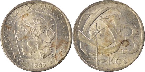| Coin, Czechoslovakia, 3 Koruny, 1969 |