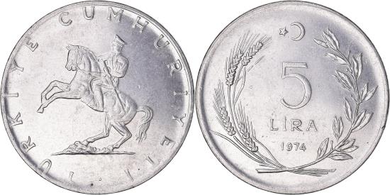 | Coin, Turkey, 5 Lira, 1974, , Stainless Steel, KM:905 |