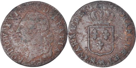 | | Coin, France, Louis XVI, Sol ou sou, Sol, 1783, Metz, , Copper | | | Sol ou sou, Head left, Crowned arms of France | | FEATURES |