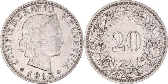 | Coin, Switzerland, 20 Rappen, 1912 |