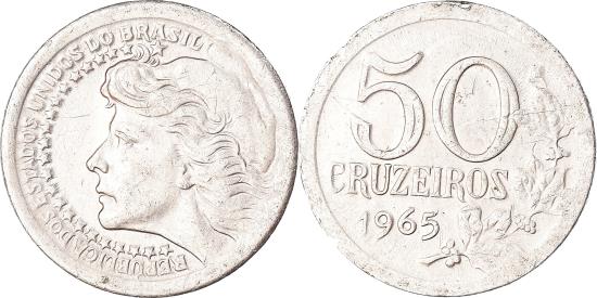 | Coin, Brazil, 50 Cruzeiros, 1965 |