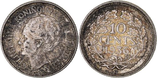 | Coin, Netherlands, Wilhelmina I, 10 Cents, 1936, Utrecht, , Silver |