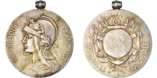 | | France, Medal, Médaille Coloniale, History, Lemaire, , Silver | | | Bust left, REPUBLIQUE FRANÇAISE, MEDAILLE COLONIALE | | FEATURES |