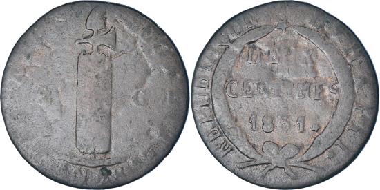 | | Coin, Haiti, 2 Centimes, 1831 / AN 28, , Copper, KM:A22 | | | Value and date within wreath, star above, Fasces divides value, liberty cap above, Die varieties exist with both diework and striking becoming progressively cruder over the life of this type. Diameter ranges from 24.3mm to 27.5mm and weight ranges from 4.7g to 6.7g. | | FEATURES |