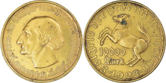 | | Coin, Germany, 10 000 Mark, 1923, Landesbank der Provinz Westfalen, | | | FEATURES |