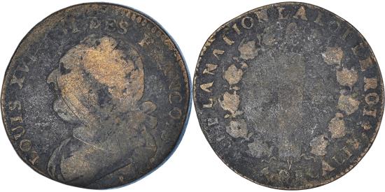 | | Coin, France, Louis XVI, 12 Deniers, AN 4, , Métal de cloche | | | Lettre d'atelier coupée, soit I (Limoges) ou L (Bayonne). Probablement Limoges selon le différent, mais il est difficile de l'affirmer. | | FEATURES |