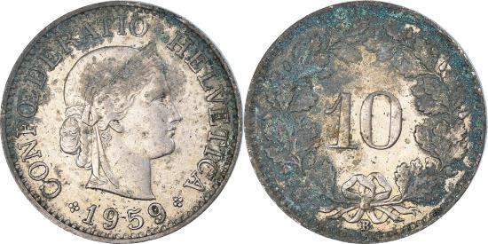 | Coin, Switzerland, 10 Rappen, 1959 |