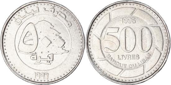 | Coin, Lebanon, 500 Livres, 1996 |