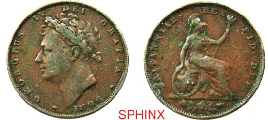 85CE2Z) BRITAIN, GEORGE IV, 1820-1830, AE Farthing, 1826, KM 697, FINE. |