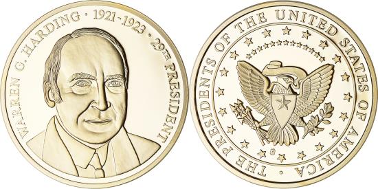 | | United States of America, Medal, Les Présidents des Etats-Unis, Warren | | | COPPER, LAYERED IN 24K GOLD | | FEATURES |
