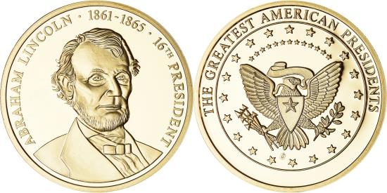 | | United States of America, Medal, Les Présidents des Etats-Unis, Abraham | | | COPPER, LAYERED IN 24K GOLD | | FEATURES |