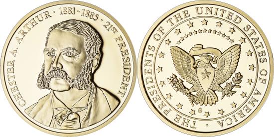 | | United States of America, Medal, Les Présidents des Etats-Unis, Arthur | | | COPPER, LAYERED IN 24K GOLD | | FEATURES |