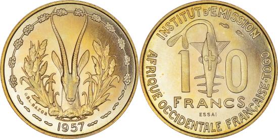 | Coin, French West Africa, 10 Francs, 1957, Paris, ESSAI, |