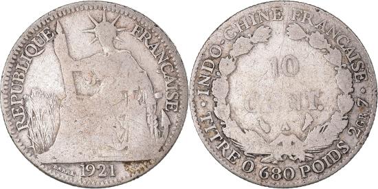| Coin, Indochine, 10 Cent, 1921, Paris, , Silver, Lecompte:162 |