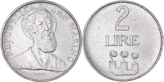 | Coin, San Marino, 2 Lire, 1972, Rome, , Aluminum, KM:15 |