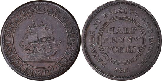| United Kingdom, Halfpenny Token, Bristol - Sheathing Nail Manufactory, 1811 |