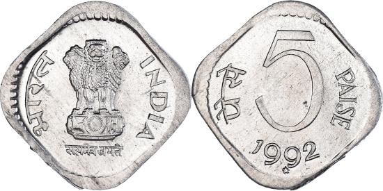 | | Coin, INDIA-REPUBLIC, 5 Paise, 1992, , Aluminum, KM:23a | | | Asoka lion pedestal, Denomination and date, Weight reduced. | | FEATURES |