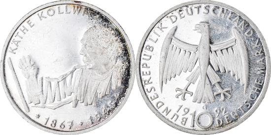 | | Coin, GERMANY - FEDERAL REPUBLIC, 10 Mark, 1992, Karlsruhe, Germany, | | | Denomination divides date below eagle, Figure at easel drawing, dates below | | FEATURES |
